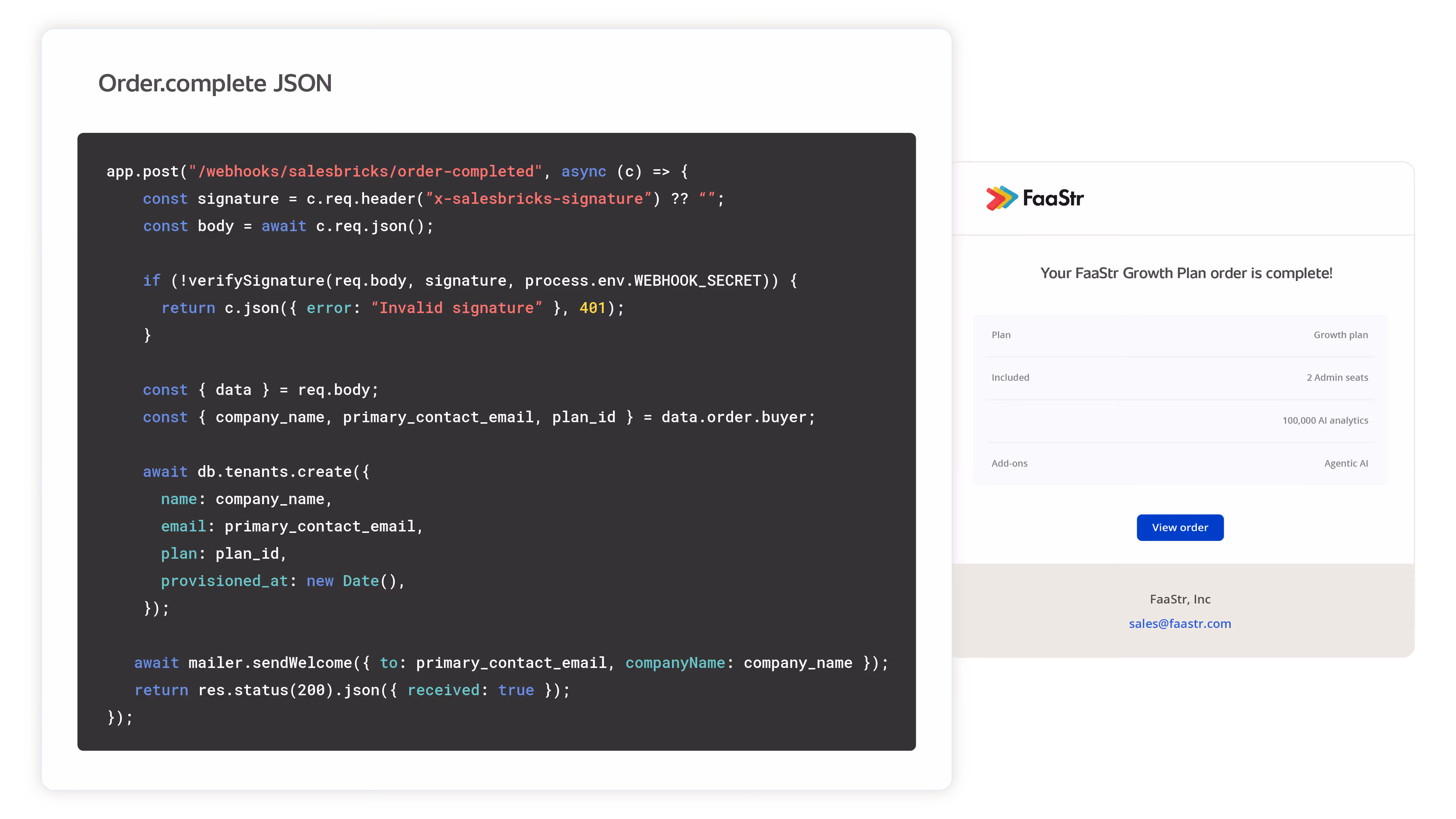 Execute every step of the revenue workflow in one place. From contracts and checkout to order management, billing, payments, and integrations, Salesbricks turns closed deals into real revenue automatically.